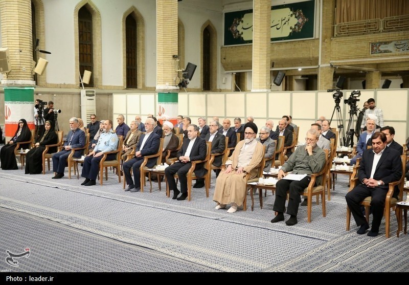 استقبل قائد الثورة الإسلامیة آیة الله العظمى الإمام السید علی الخامنئی، یوم الأحد، رئیس الجمهوریة وأعضاء الحکومة.