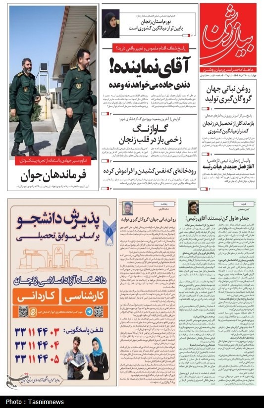 عناوین روزنامههای استان زنجان در ۸ مهر ۱۴۰۴