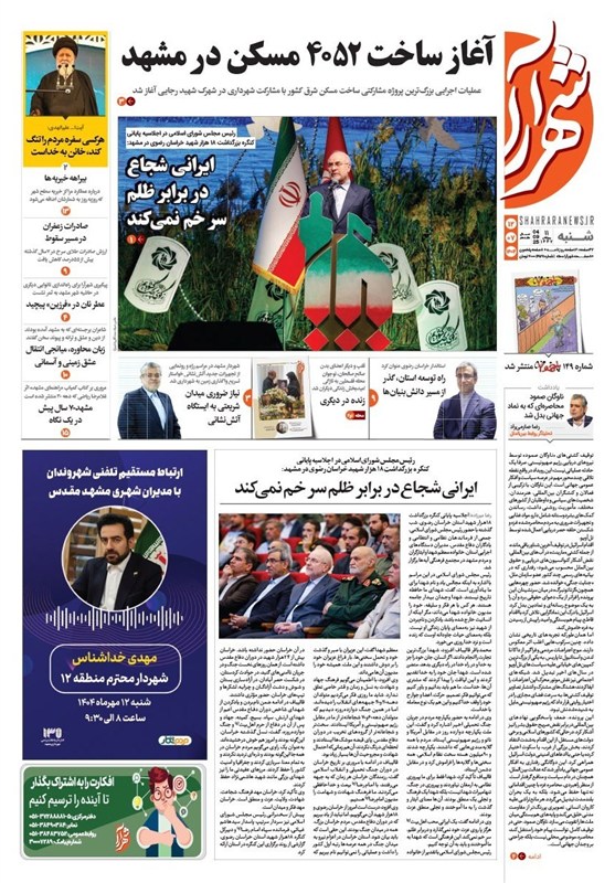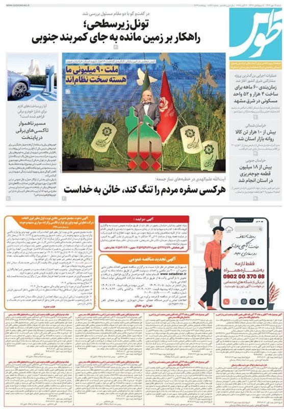 مطبوعات شنبه دوازدهم مهر در خراسان رضوی/ملت ۹۰میلیونی ما هسته سخت نظام اند