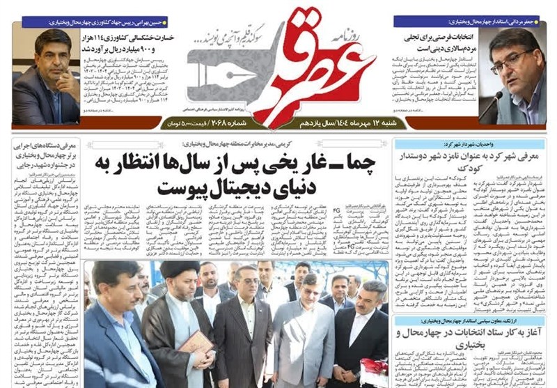 مطبوعات شنبه 12 مهر در چهارمحال و بختیاری