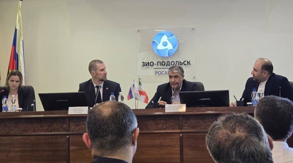По сообщению Тасним новости, глава Организации по атомной энергии Ирана Мохаммад Эслами в ходе поездки в Pоссию для участия во Всемирном форуме по атомной энергии посетил предприятия Pосатома «Зио-Подольск» и «ТВЭЛ».